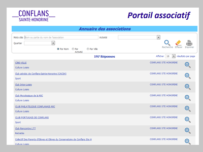 Le portail permet aux associations qui disposent d’un accès d’assurer la mise à jour de leurs données, de transmettre des informations aux services de la ville de Conflans-Sainte-Honorine et d’effectuer des demandes de subventions.